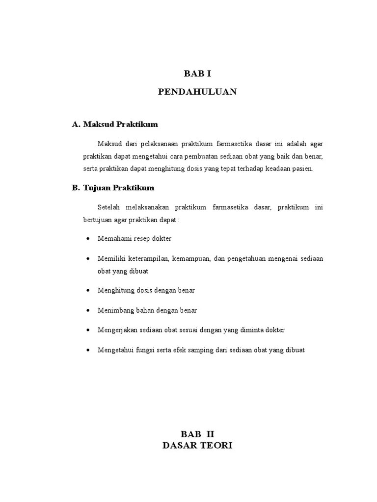 laporan praktik ilmu rersep kelas x smk farmasi yasari kota parepare ( nurul magfirah ismi. praktikum tetap diadakan pada siang hari. Definisi pulveres atau serbuk bagi adalah serbuk yang dibuat dalam bobot yang lebih kurang sama, dibungkus menggunakan bahan pengemas yang cocok untuk sekali minum. Terdapat 3 kegiatan praktikum yang terdapat pada modul praktikum 1 ini, yaitu: Anasthasia pujiastuti, s.farm., apt laboratorium teknologi farmasi akademi farmasi theresiana semarang 2010