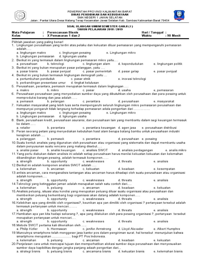 Menyediakan persediaan barang dagangan untuk disimpan ke dalam gudang e. Pengertian analisis pasar dan strategi pemasaran. Prediski soal latihan dan kunci jawaban penilaian akhir semester (pas/uas) kelas 10 smk/mak mapel marketing semester 1 (ganjil) kurikulum . P eng atur an rumah t angg a. Contoh soal pg dan essay uts pkn kelas 10 semester 1 beserta jawabannya kewarganegaraan pengikut.